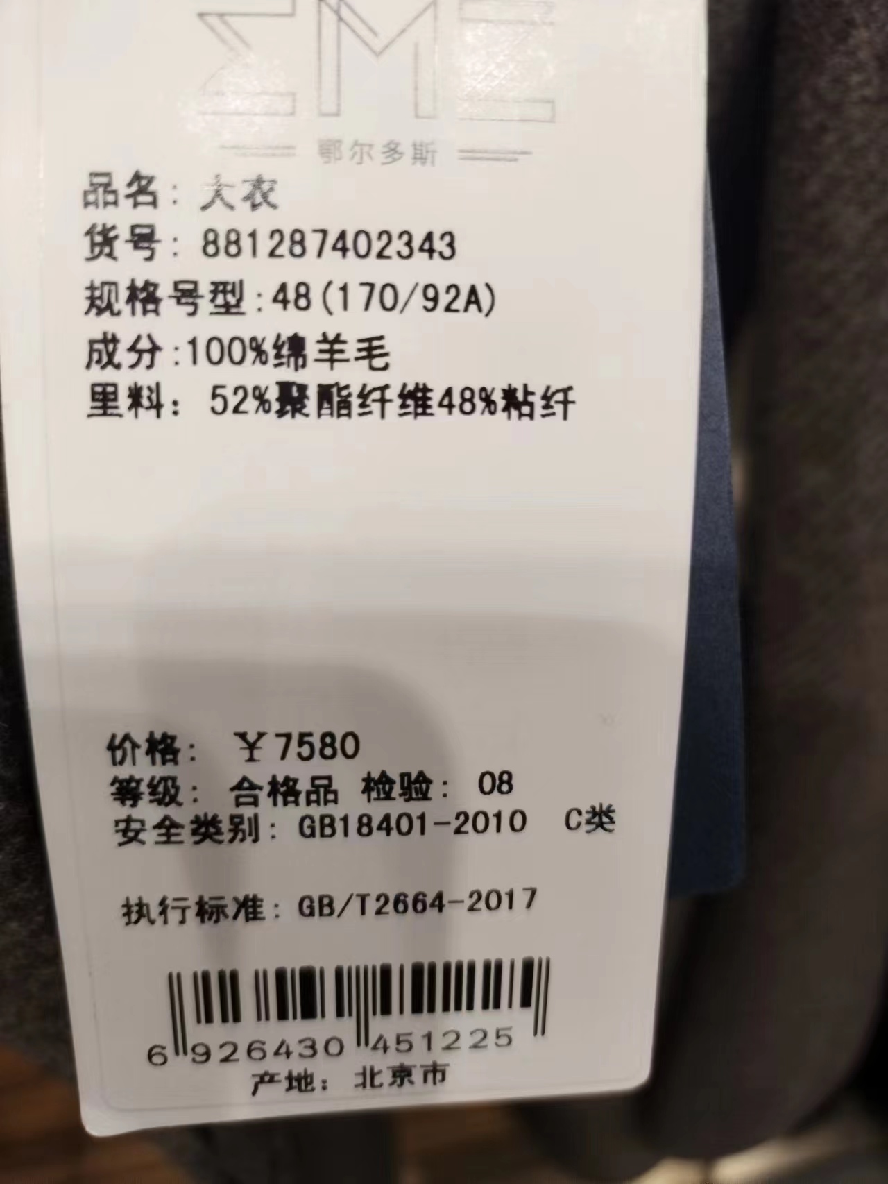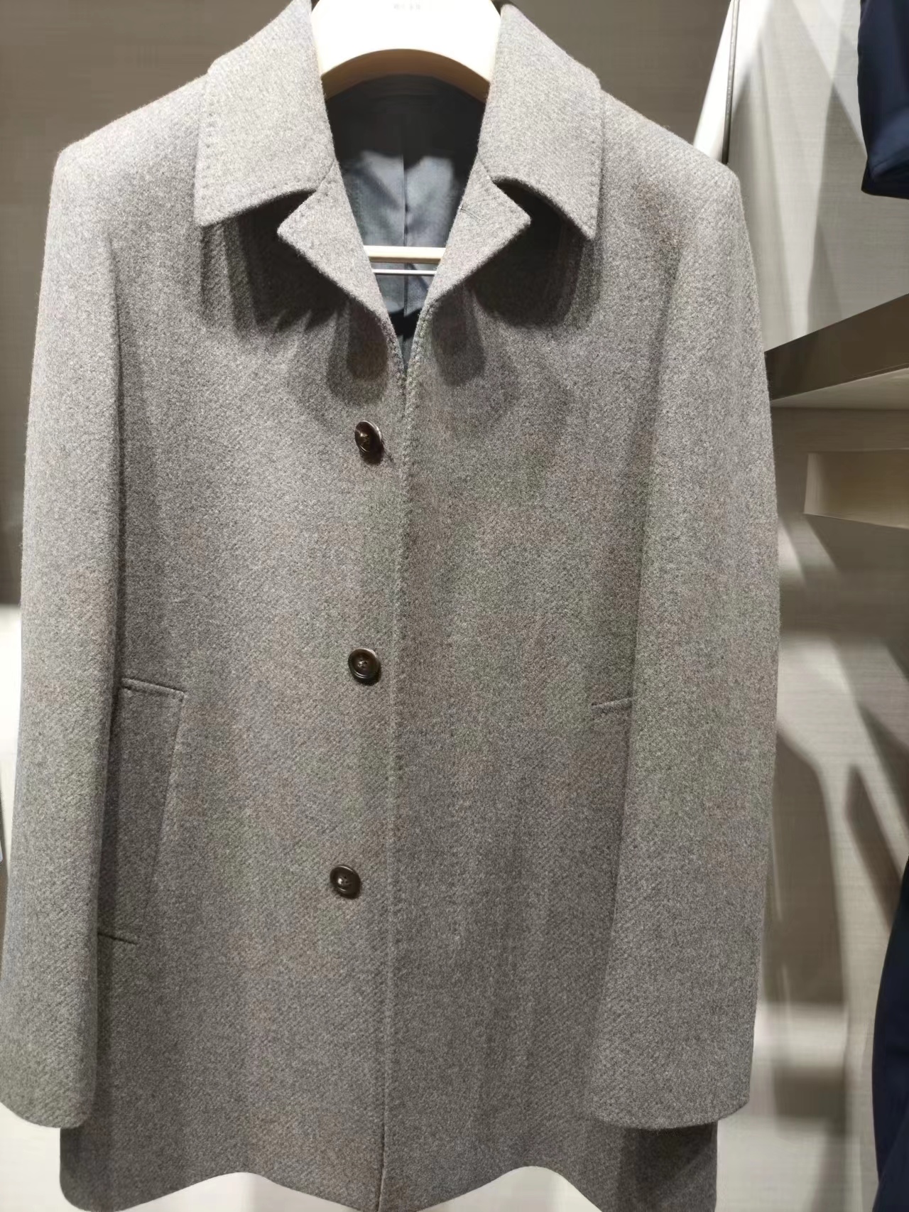 采用100*棉羊毛,上身无压身感,手感柔软舒适,挺括,版型极佳,采用微笑领更具年轻活力