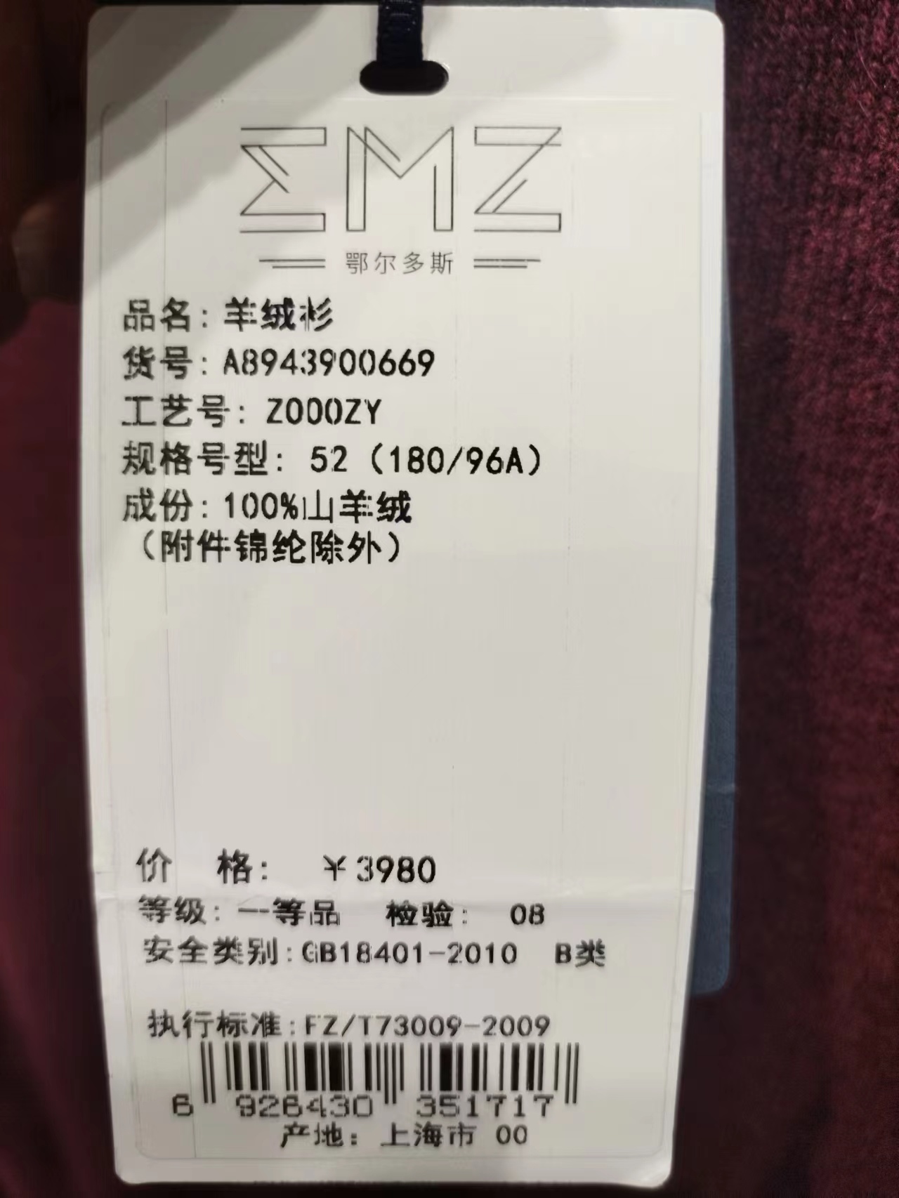 EMZ鄂尔多斯爆品羊绒衫