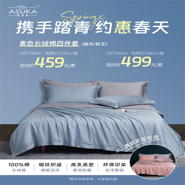 >>阿思家素色长绒棉四件套