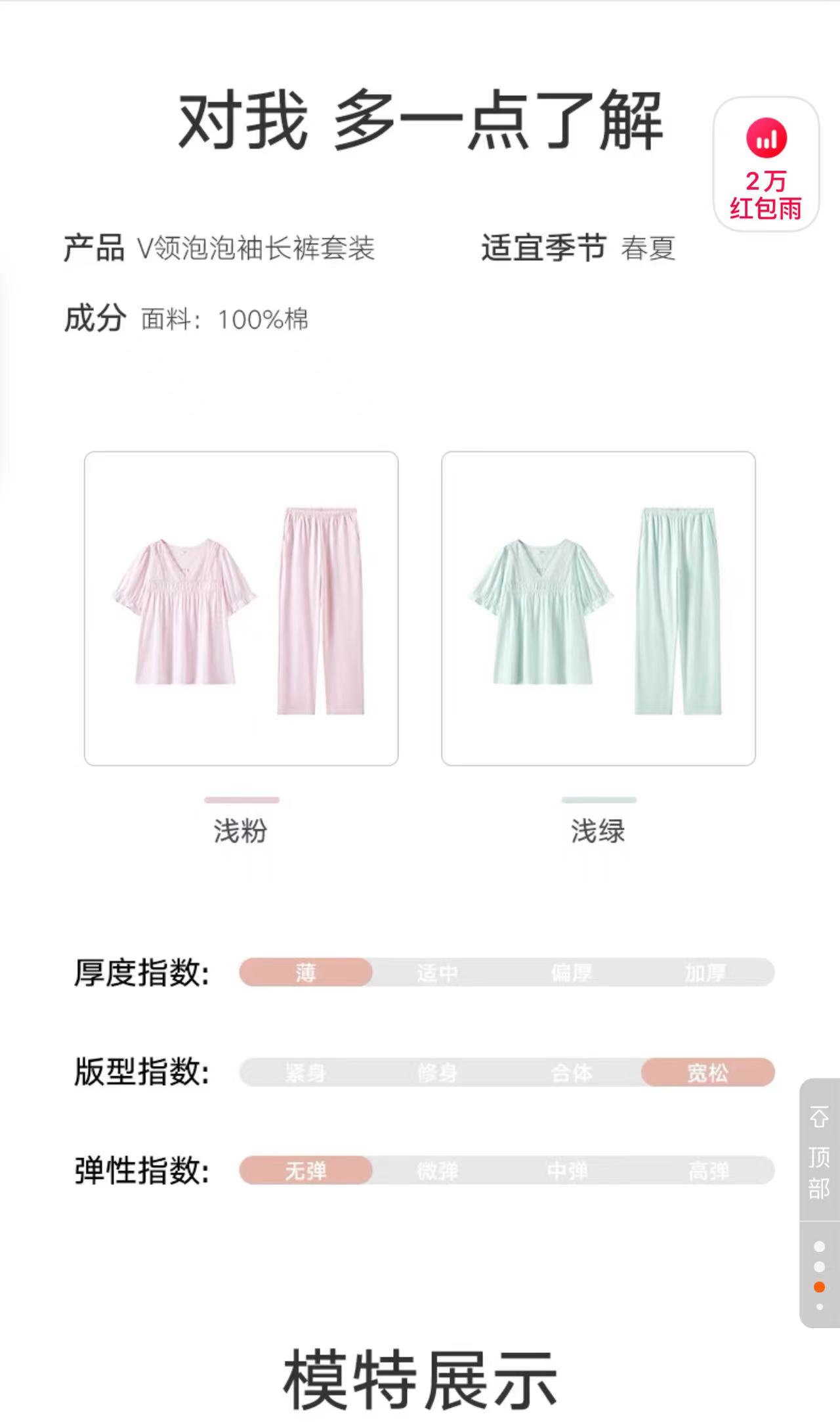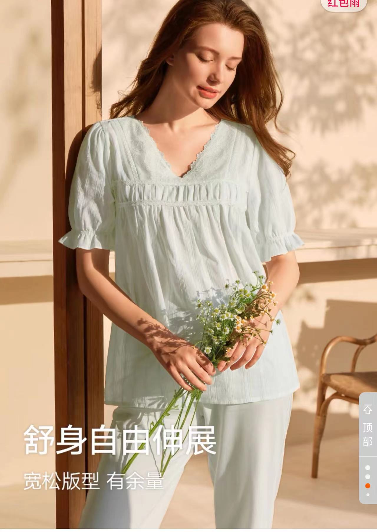 V领泡泡袖套装,裸感睡眠。60S纯棉提花面料,居家睡眠,外穿自在。灵动泡泡袖,2个色,薄荷绿和香芋紫