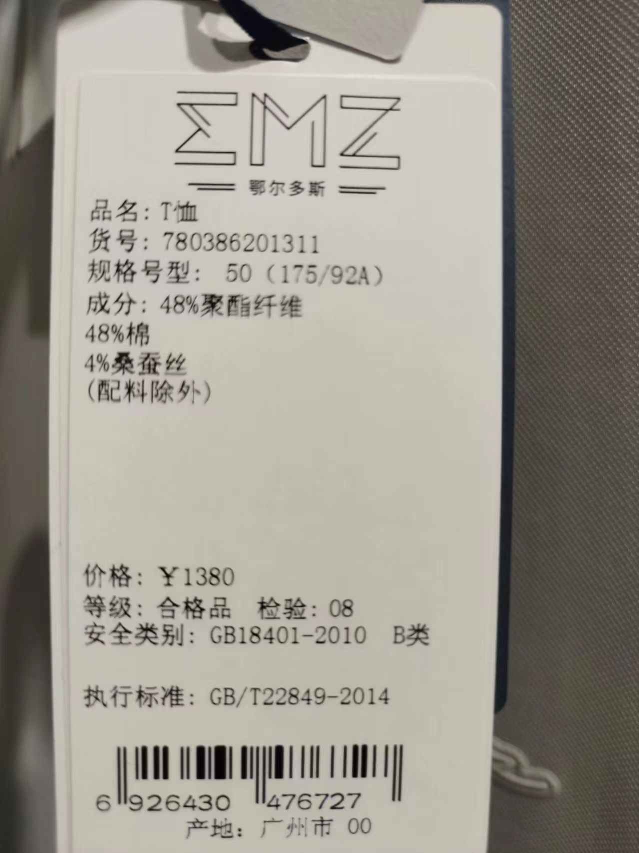 EMZ鄂尔多斯T恤手感软糯舒适,透气吸湿性强,颜色清新自然,男士必备的人手一件POLO,您值得拥有