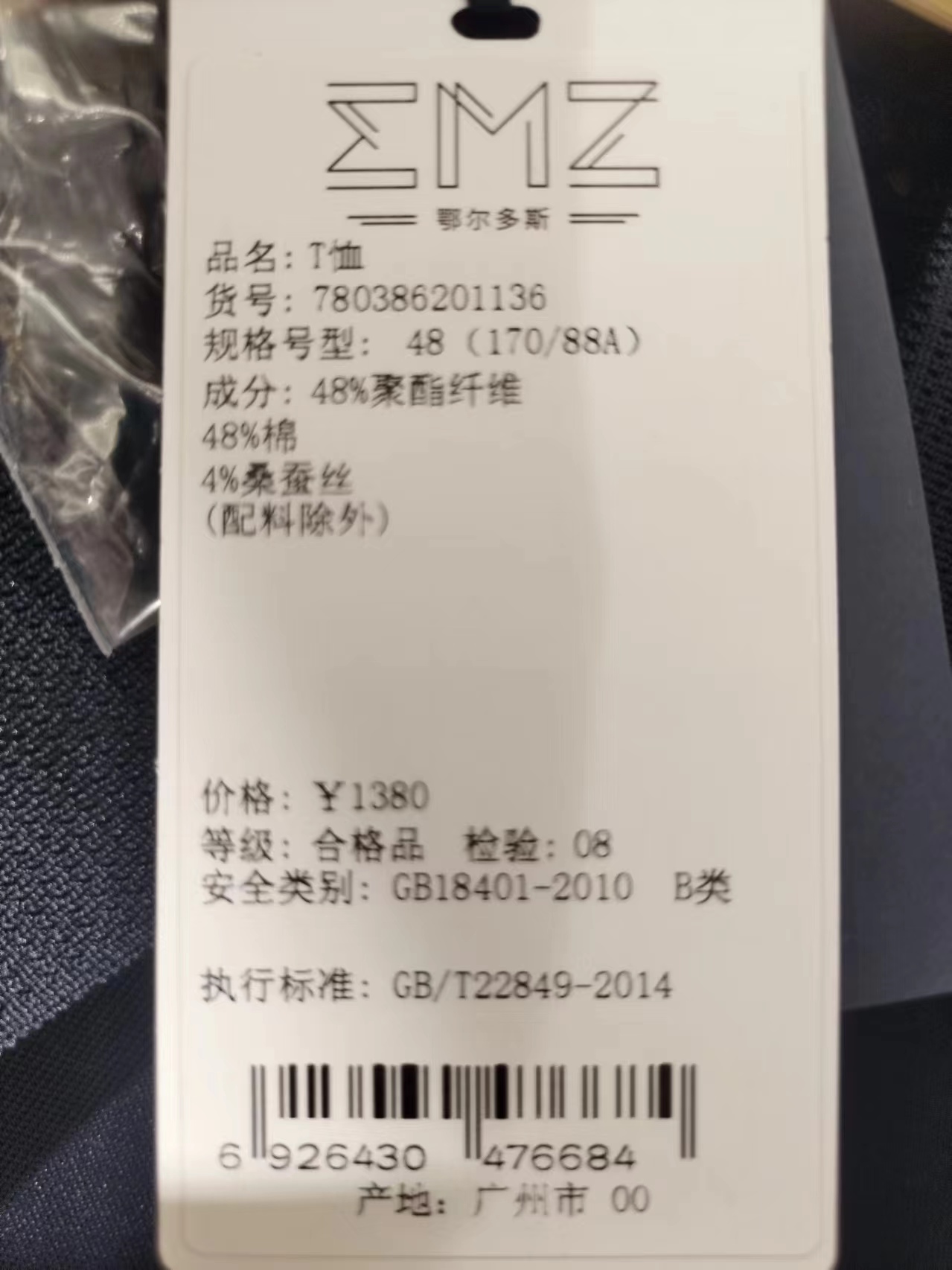 EMZ鄂尔多斯T恤,独特的拉链设计更具设计感,棉=桑蚕丝的结合让您在炎炎夏日体验清凉感,一款三色多种选择