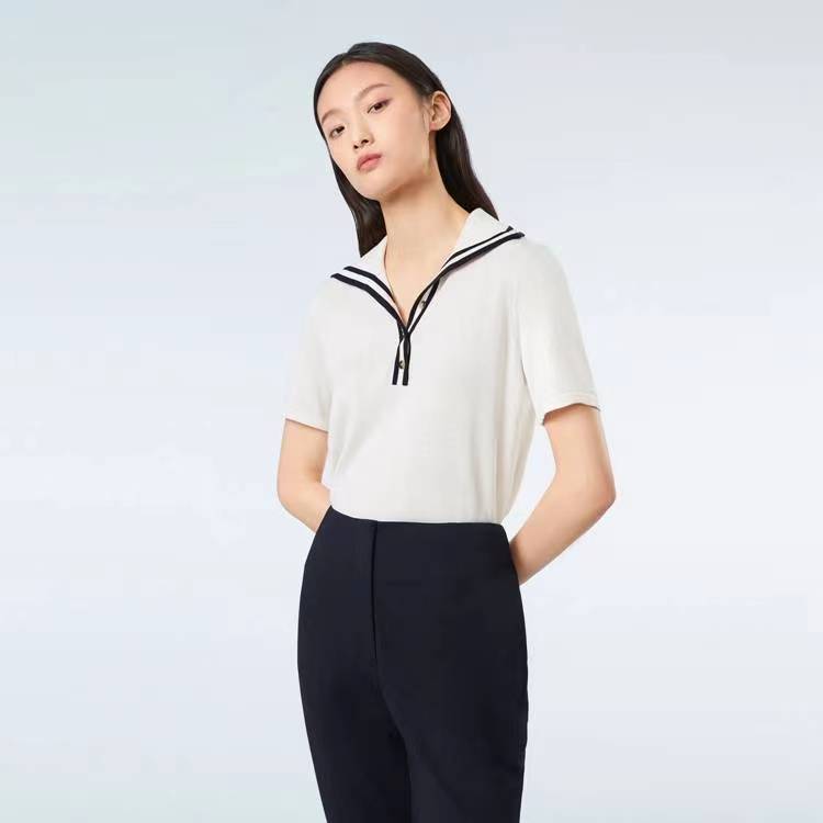 OVV丝绵混纺精致休闲半开襟海军风短袖针织衫