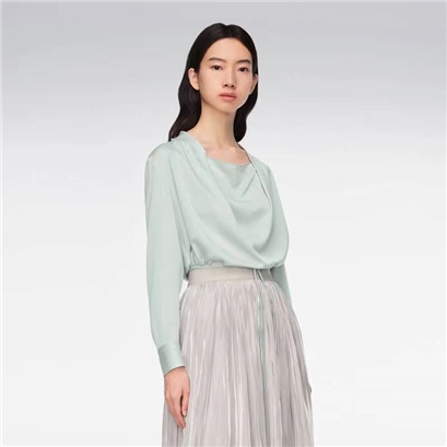 OVV进口三醋酸荡领配腰绳长袖衬衫