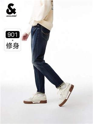 杰克琼斯夏季新款男士时尚修身弹力牛仔长裤