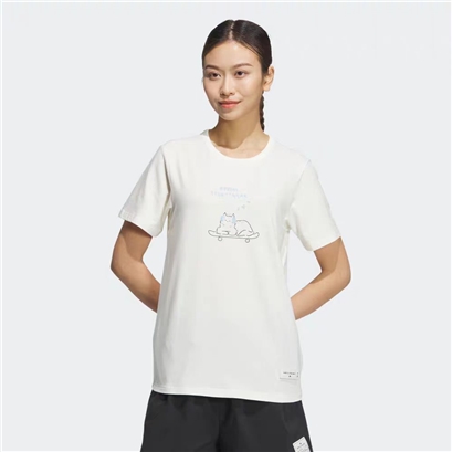阿迪达斯运动T恤(女),此款T恤白色和黄色,2色可选,全棉材质,面料柔软舒适透气0