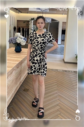 >>BOYI BOCASSIS两侧抽绳泡泡袖连衣裙