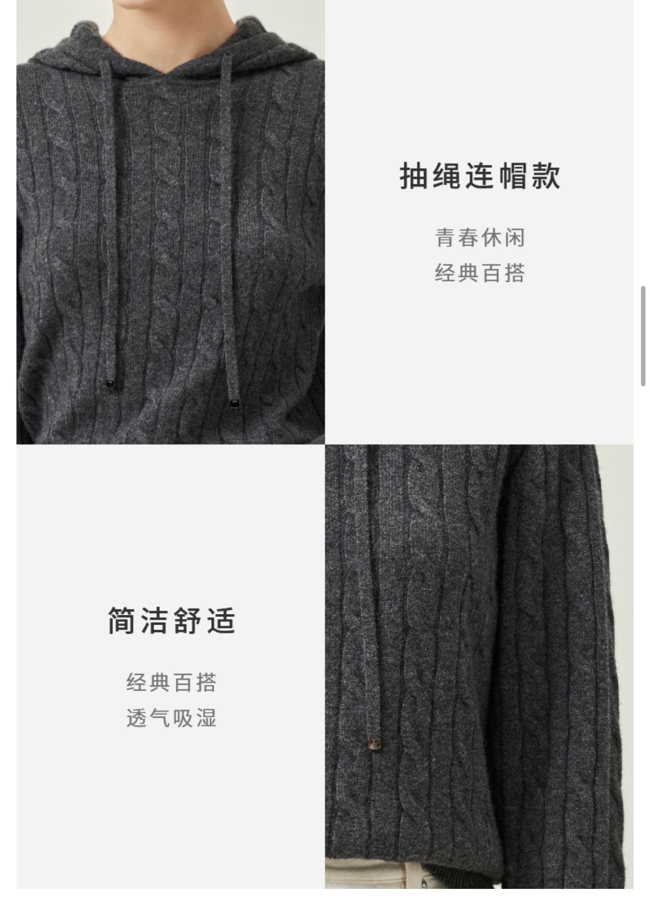 抽绳连帽款,休闲百搭,青春感扑面而来,H型合体版型,复古大麻花,经典 百搭,下摆处螺纹收口,兼具美感和包 容性,衣型合体不易变形。