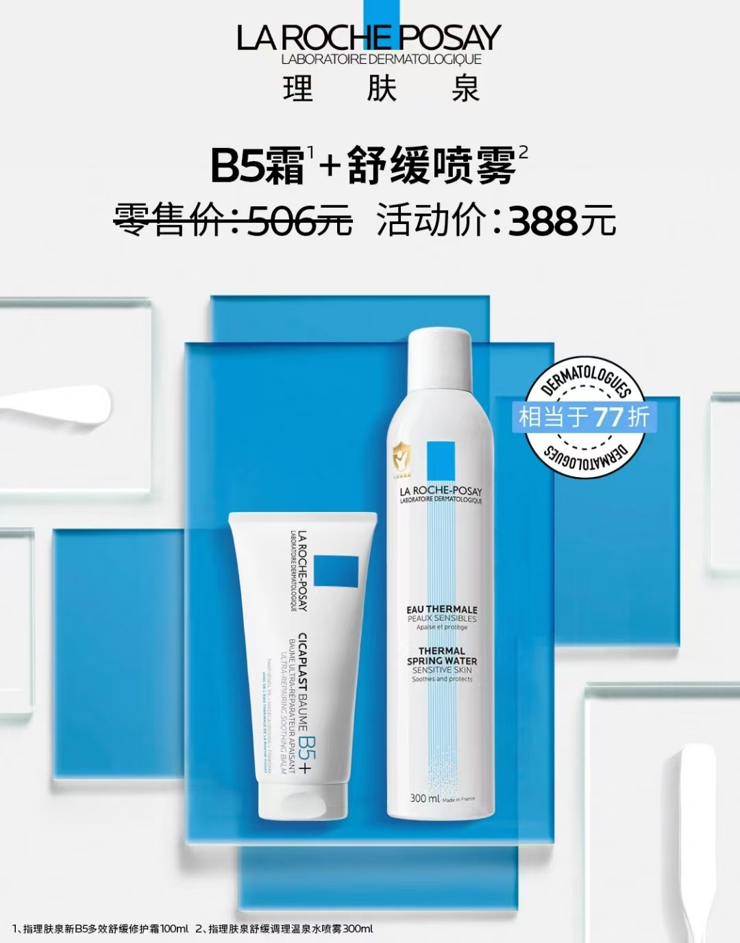 >>理肤泉新B5多效舒缓修护霜100ml+舒缓喷雾