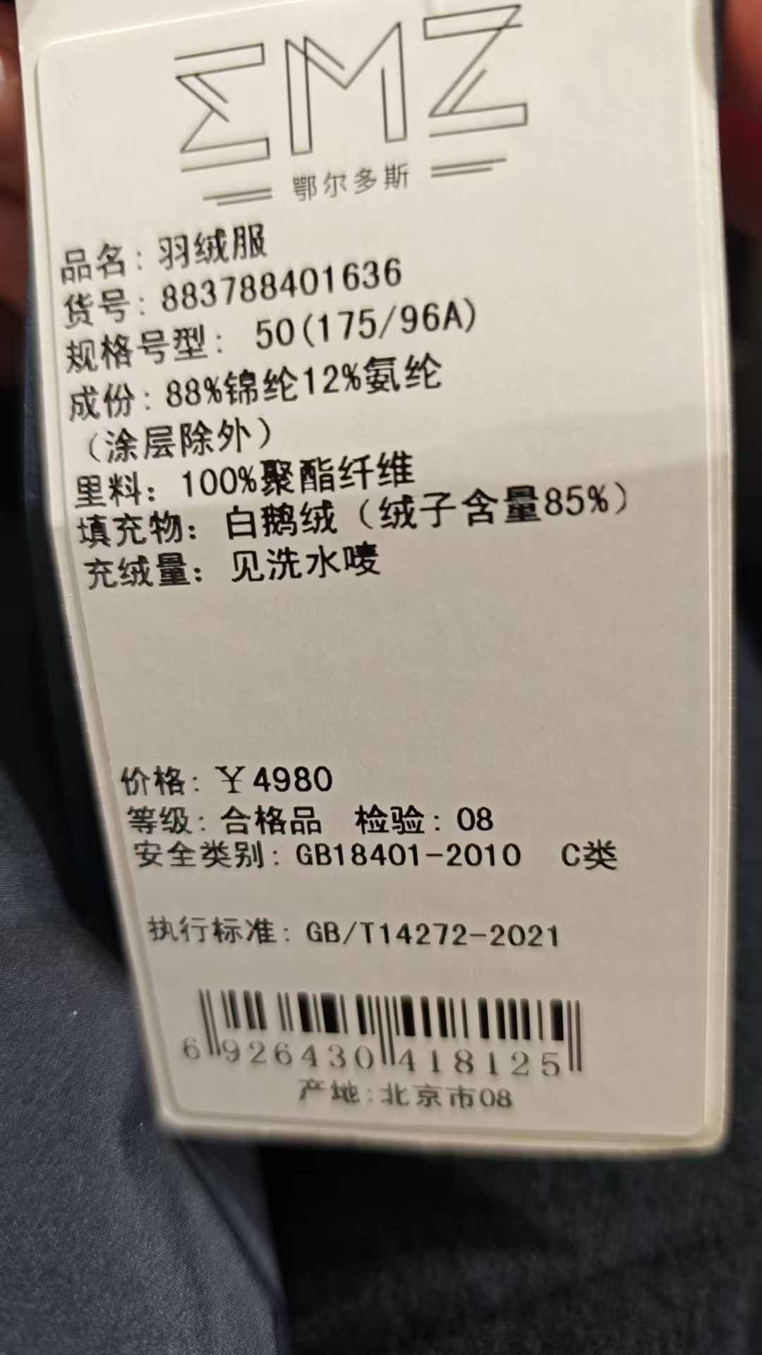 EMZ鄂尔多斯西伯利鹅绒服,轻薄暖与一身,你值得拥有