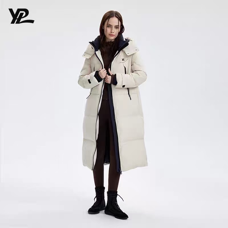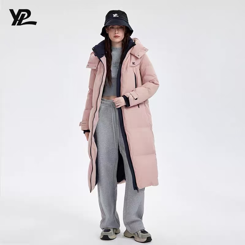 YPL羽绒服女冬长款90绒新款纯色连帽羽绒服