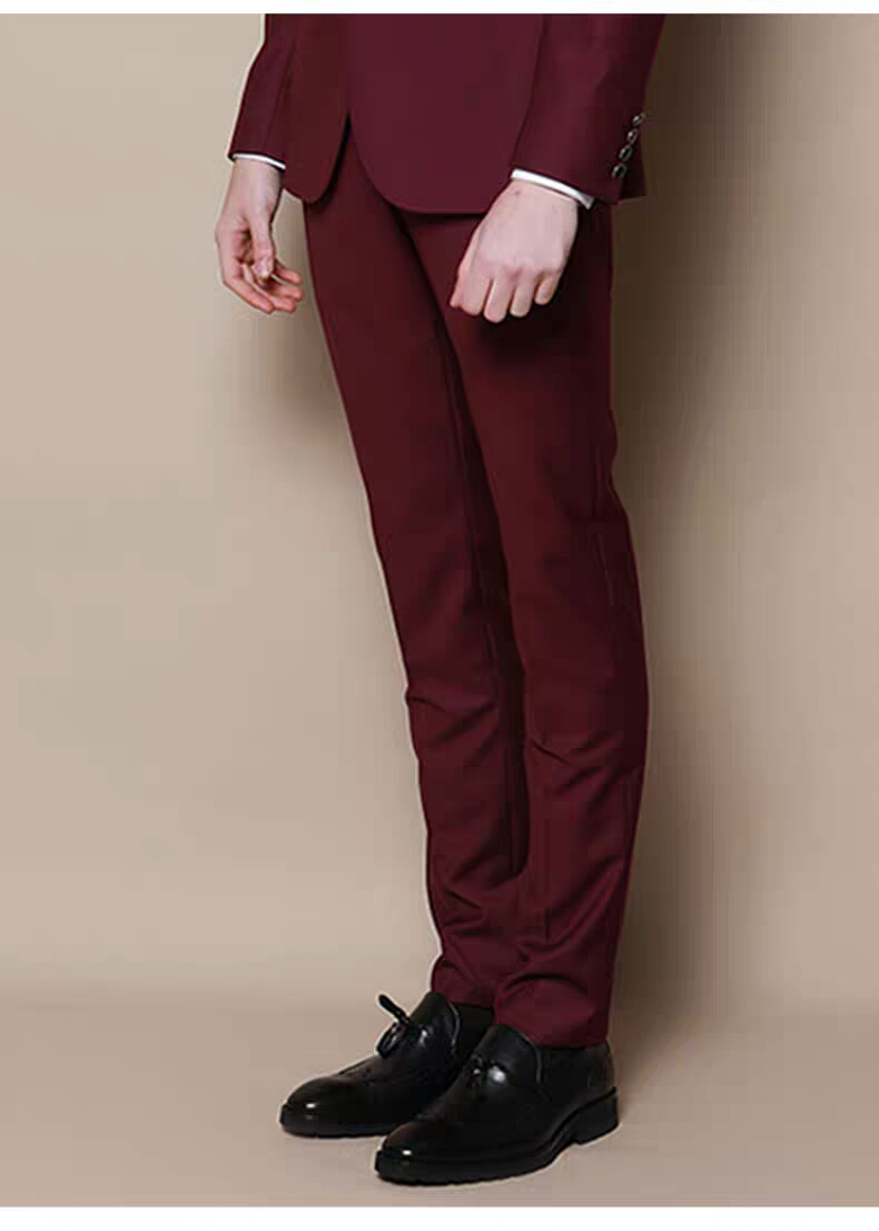 >>XEE商场同款男士酒红色修身套西
