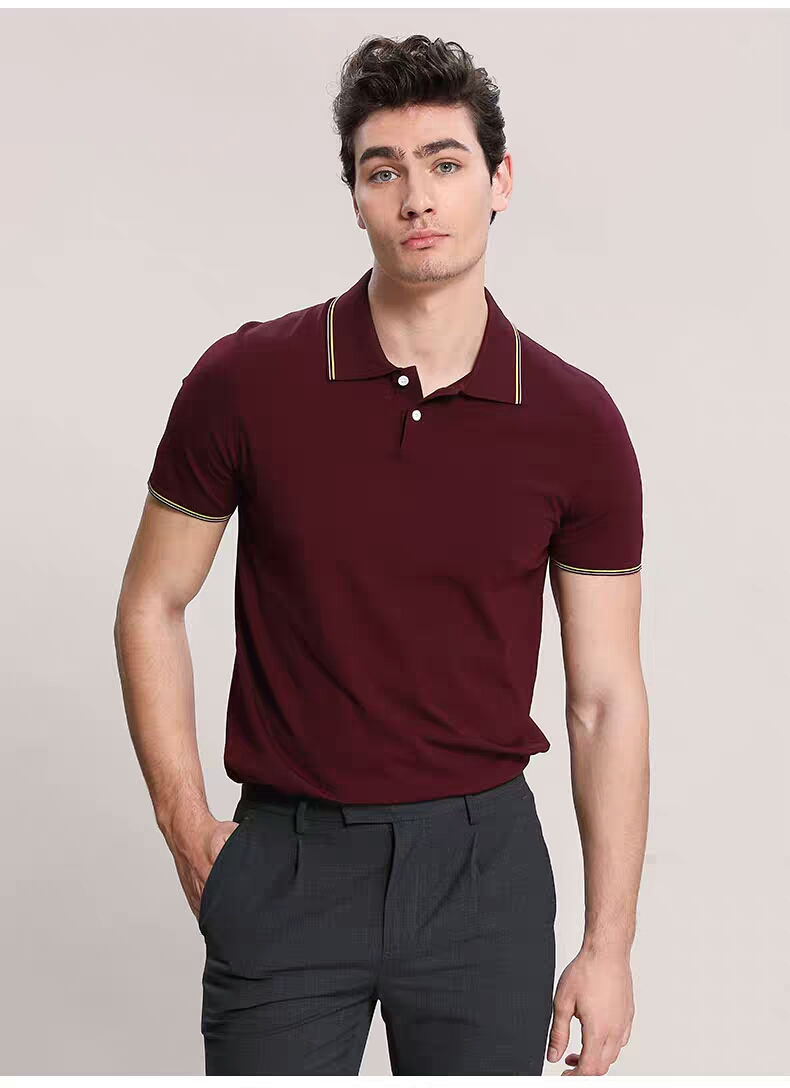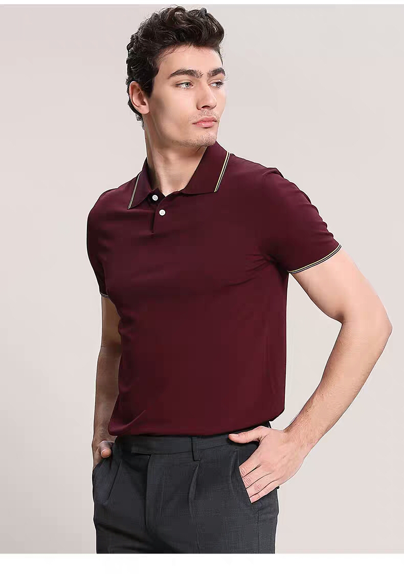 >>XEE商场同款商务休闲酒红色POIO衫纯色简约短袖T恤
