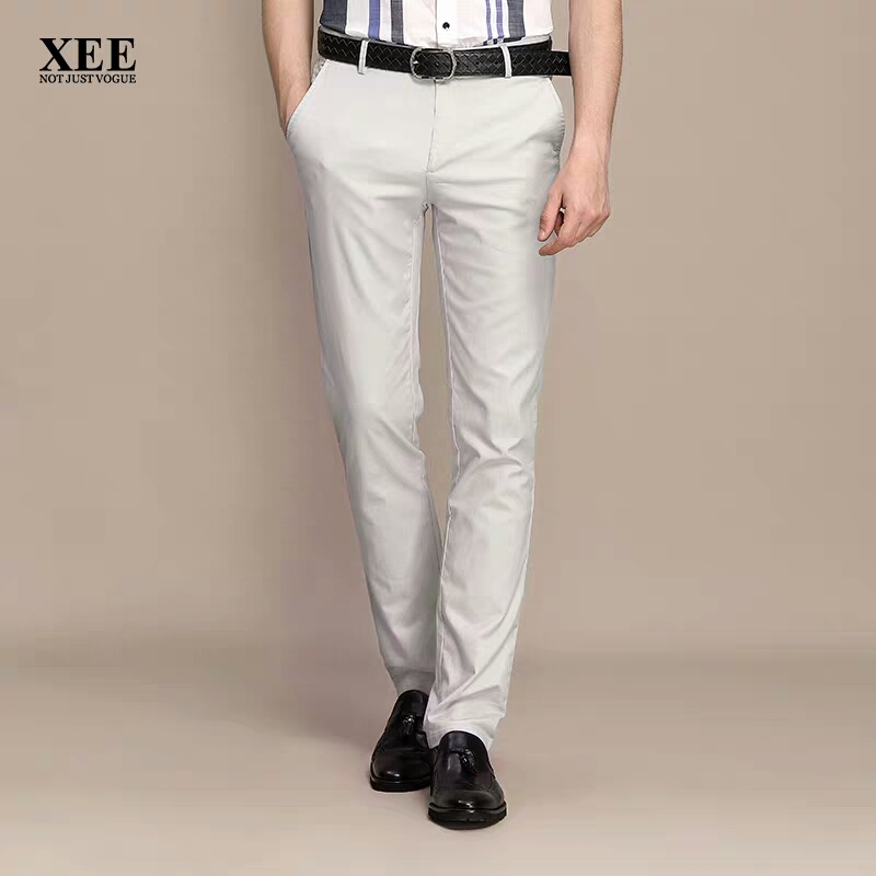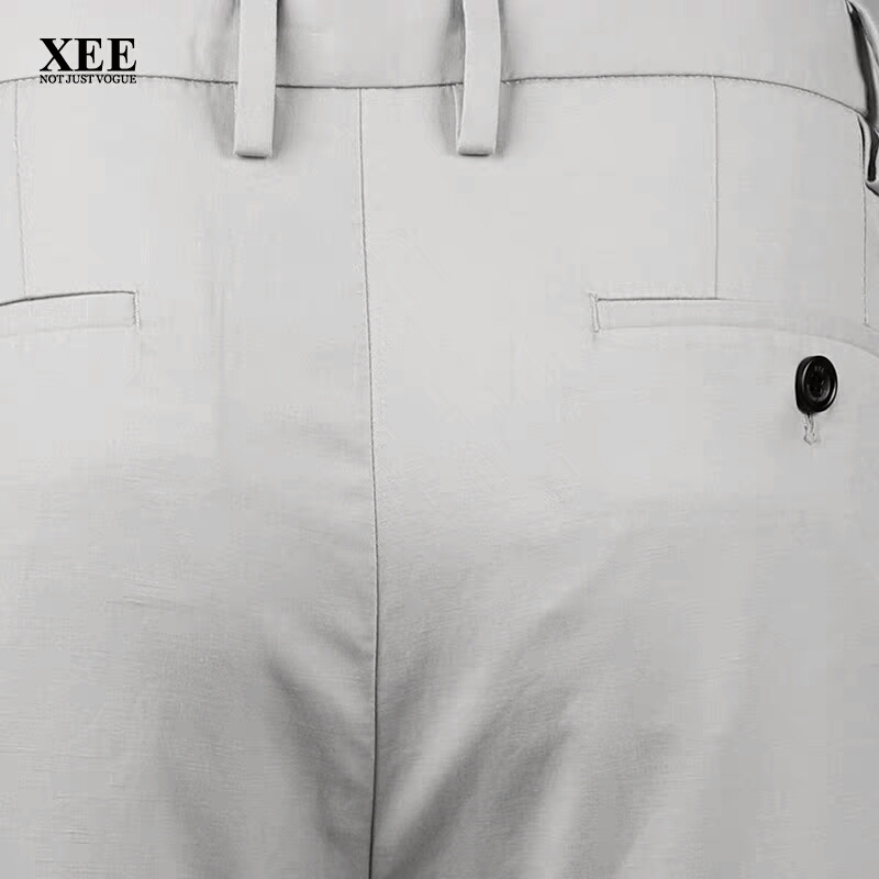 >>XEE商场同款浅灰色松紧裤腰商务休闲男裤简约合体薄长裤夏