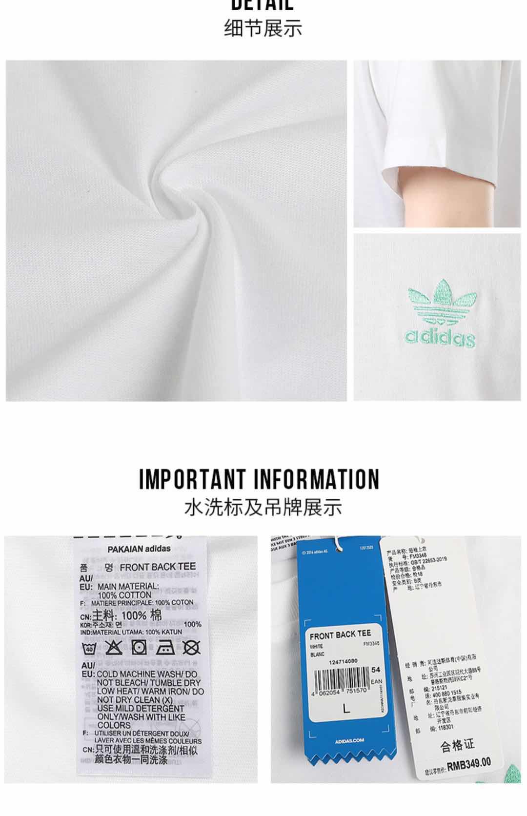 >>阿迪达斯三叶草 男装 2020新款运动服白色短袖T恤 FM3348 特价门店自提