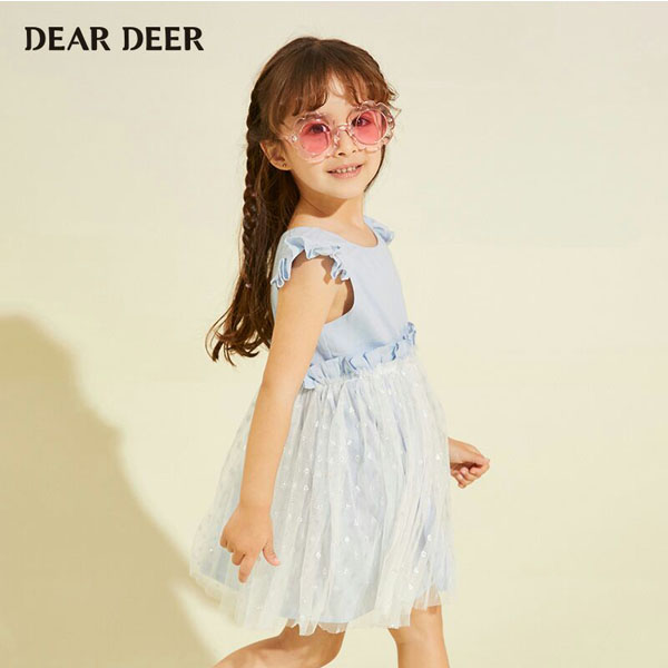 迪迪鹿2020拼接网纱连衣裙女小童