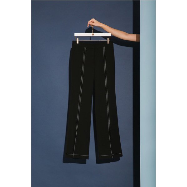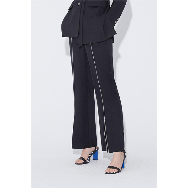 >>玛丝菲尔素夏款黑色错落下摆微喇长裤