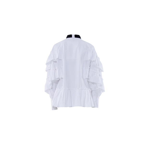 >>玛丝菲尔素20秋白色宫廷风荷叶边白衬衫