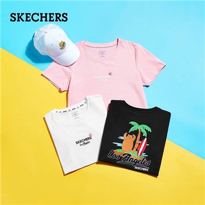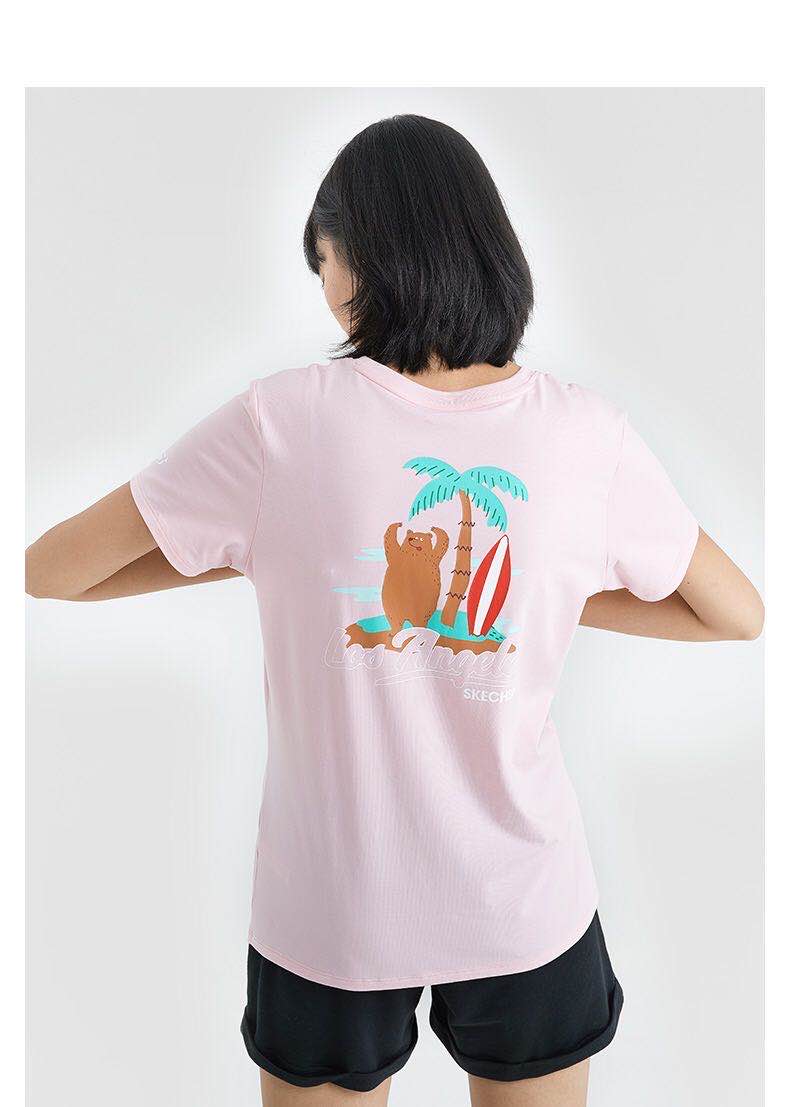 >>Skechers斯凯奇女款童趣粉色T恤