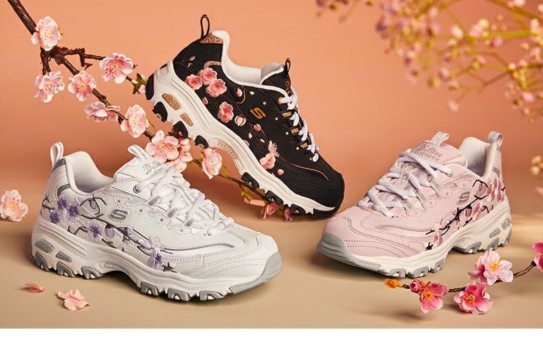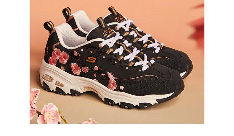 >>Skechers斯凯奇秋季新品女士厚底老爹鞋时尚花卉刺绣运动鞋149239