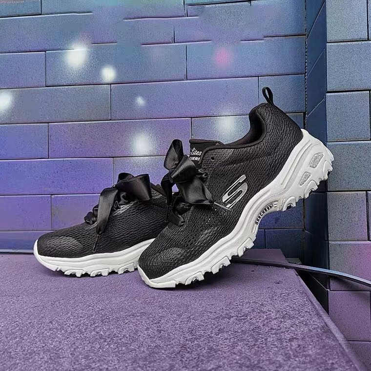 >>Skechers斯凯奇女鞋丝带熊猫鞋厚底增高老爹鞋66666196