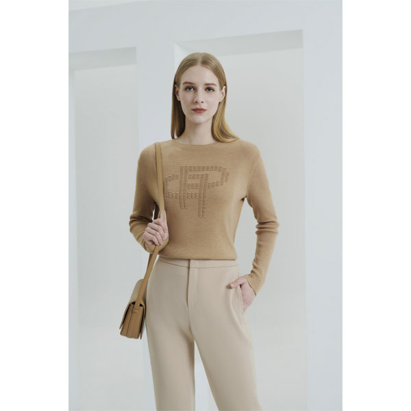经典套头针织衫,前片花式针法织出新立体logo效果,倍显精致; 杏仁色更易搭 配;羊毛混纺,穿着舒适。