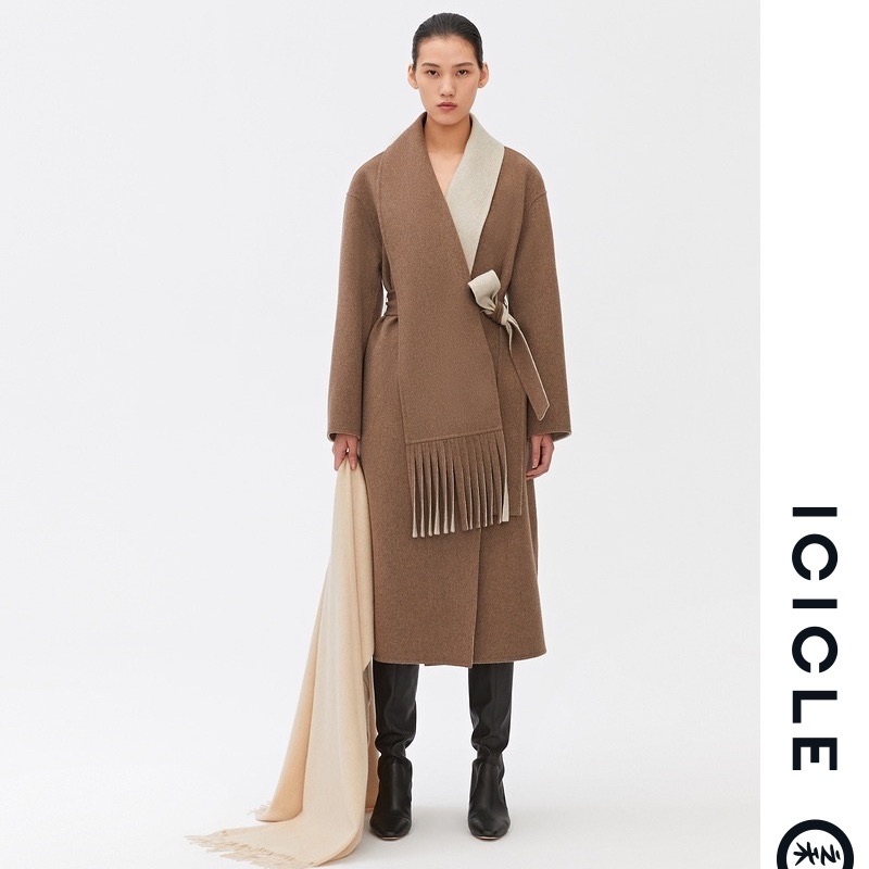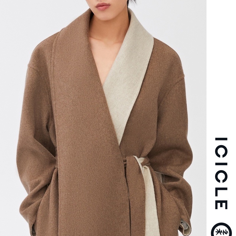 【限量发售Natural Way】ICICLE之禾女装羊绒双面呢围巾领大衣