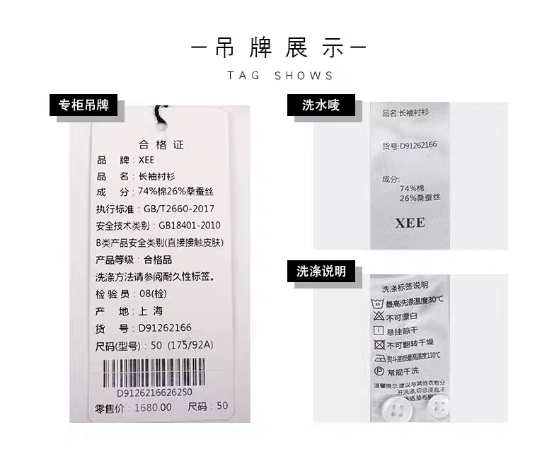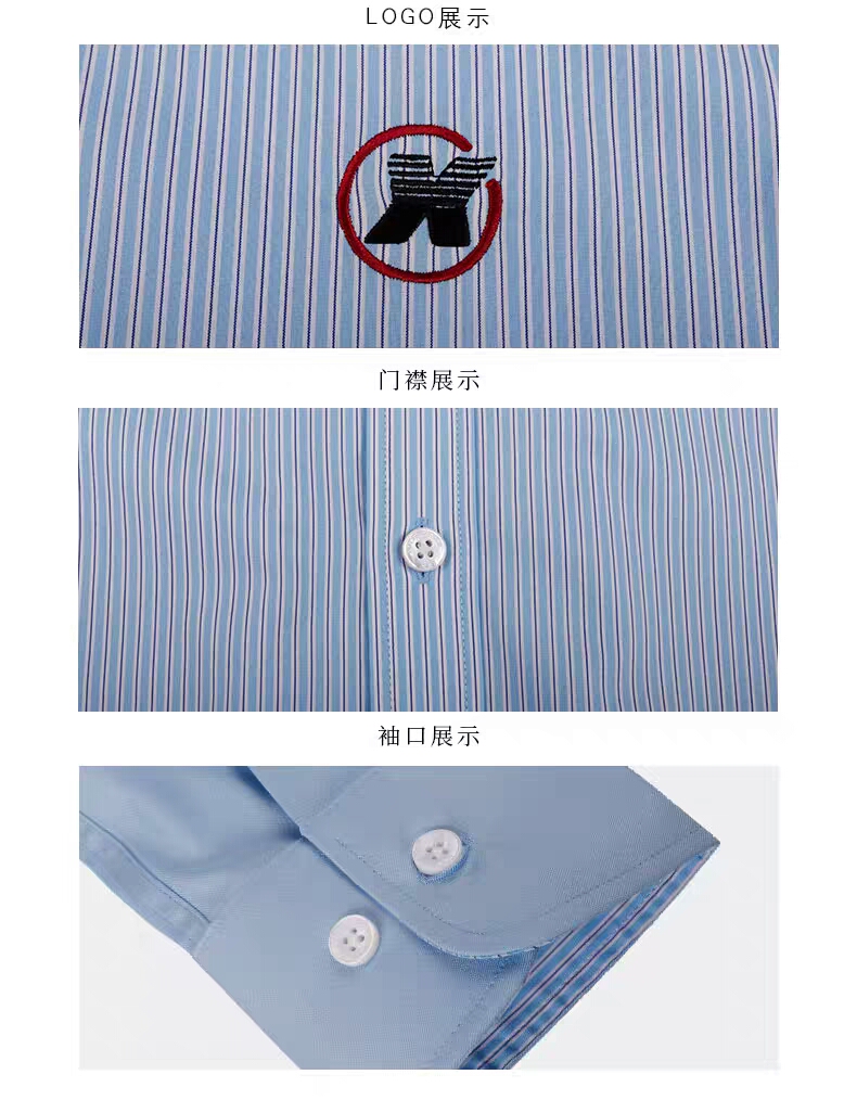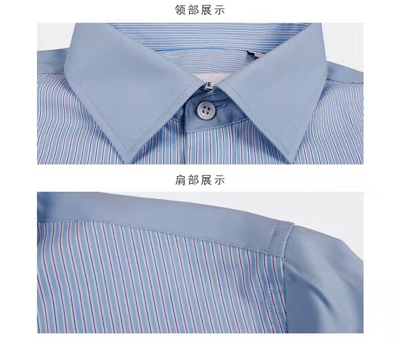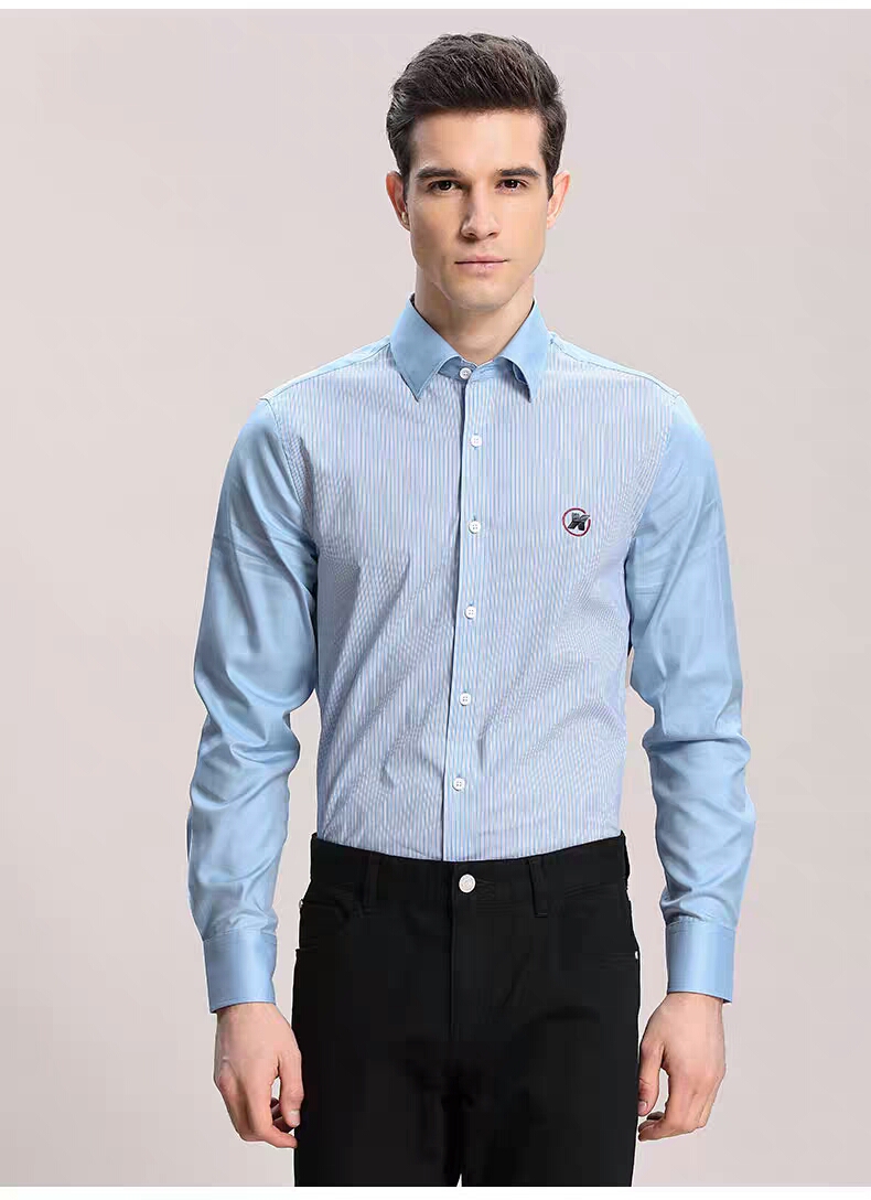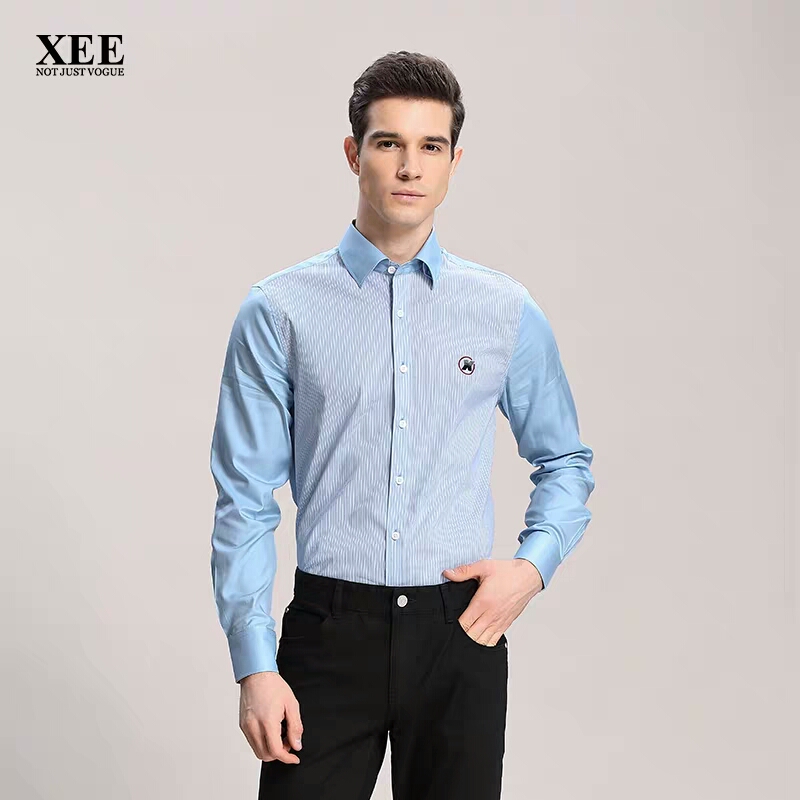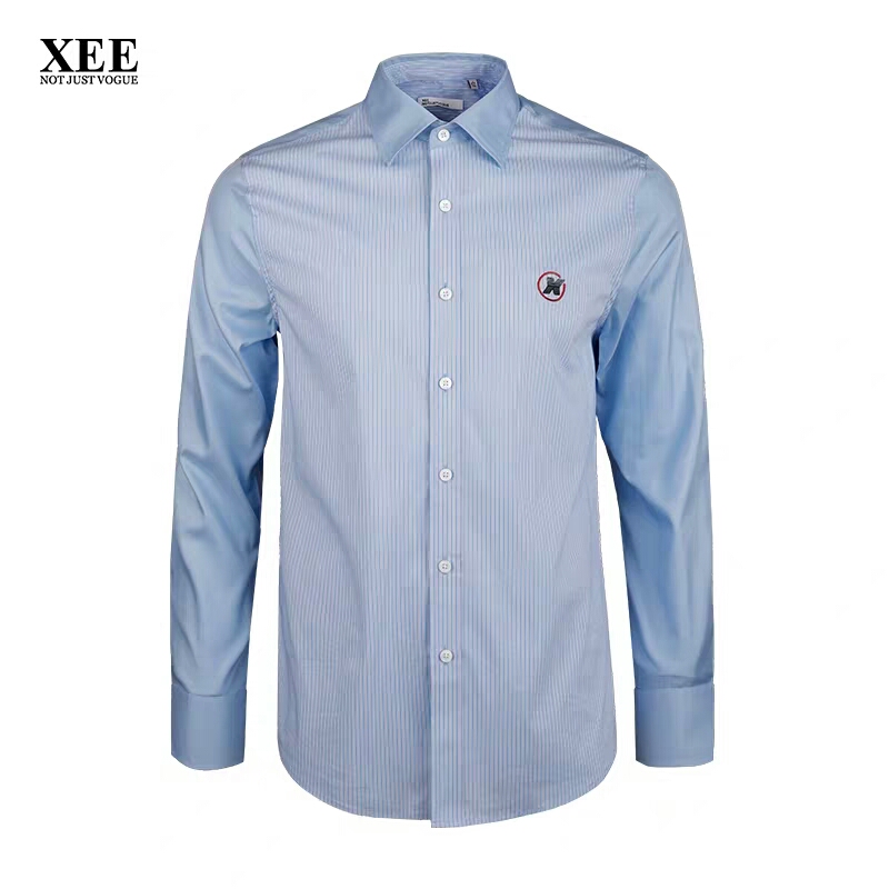 >>XEE商场同款男士蓝白条纹拼接绣花丝绵混纺长袖衬衫