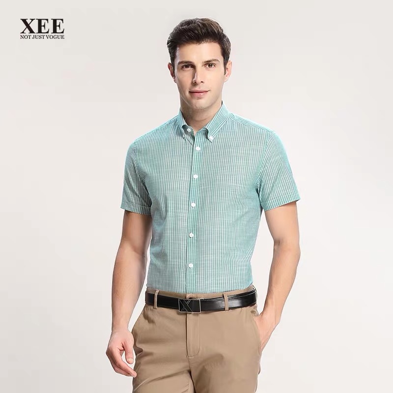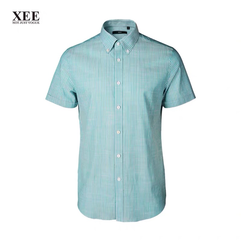 XEE商场同款绿色条纹微弹舒适时尚短袖