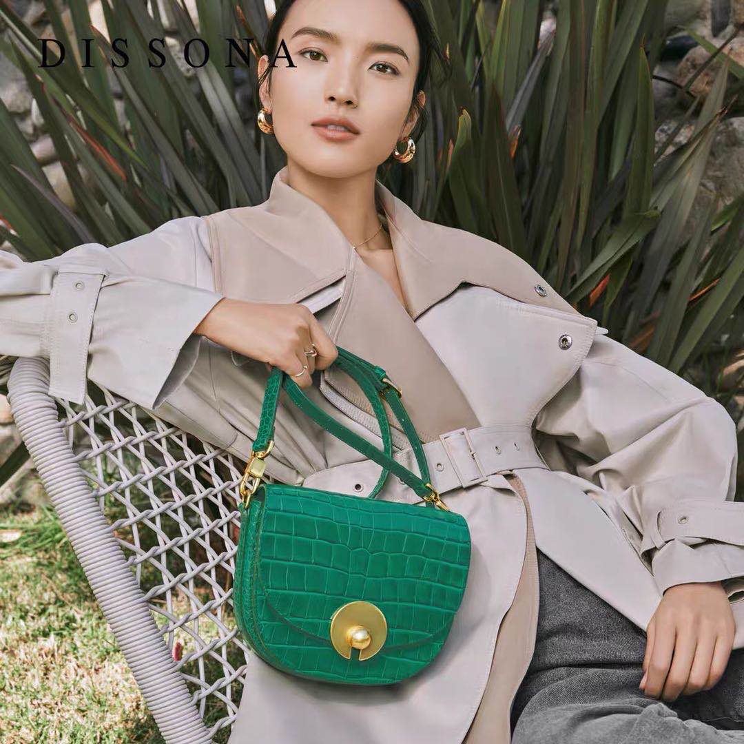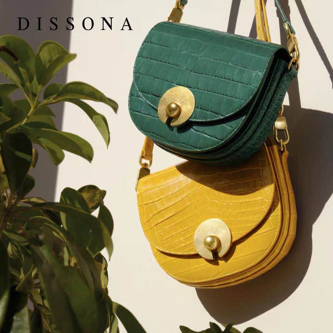迪桑娜包包2020新款遇见里斯本女包轻奢鳄鱼纹马鞍包