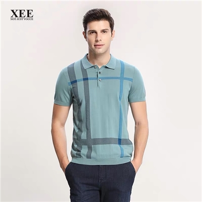 >>XEE商场同款男士绿蓝格子时尚POLO衫