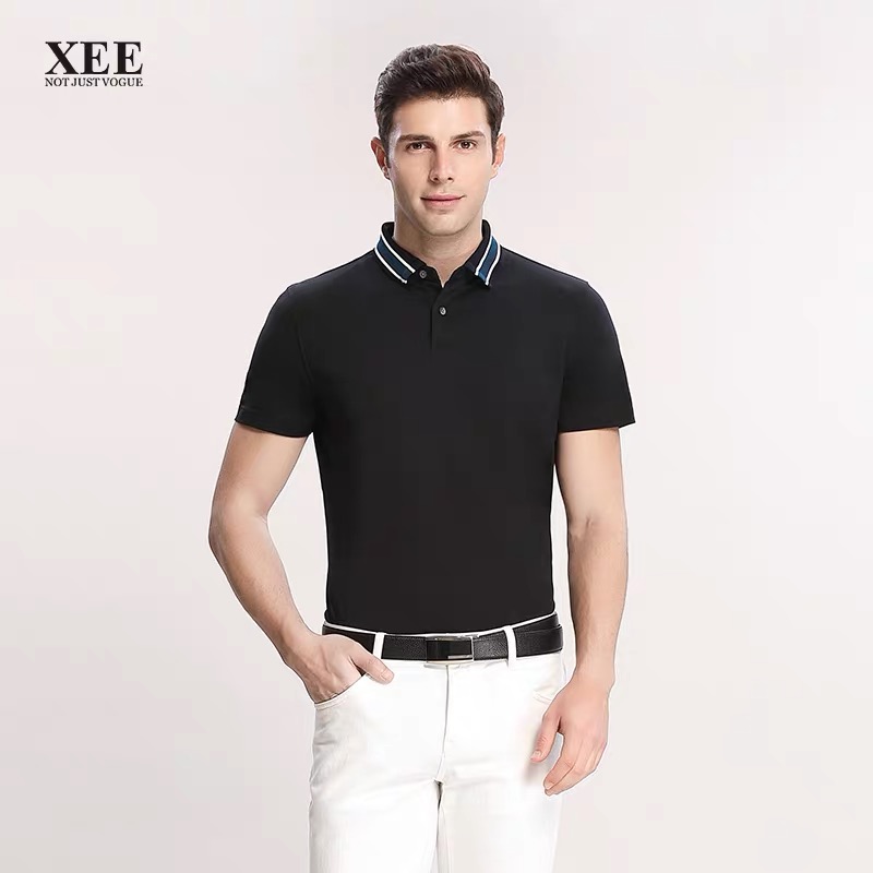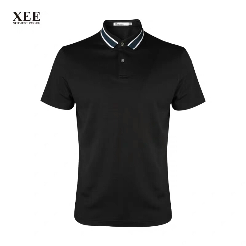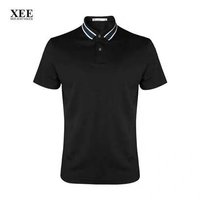 XEE商场同款男士黑色撞色领纯棉商务POIO衫