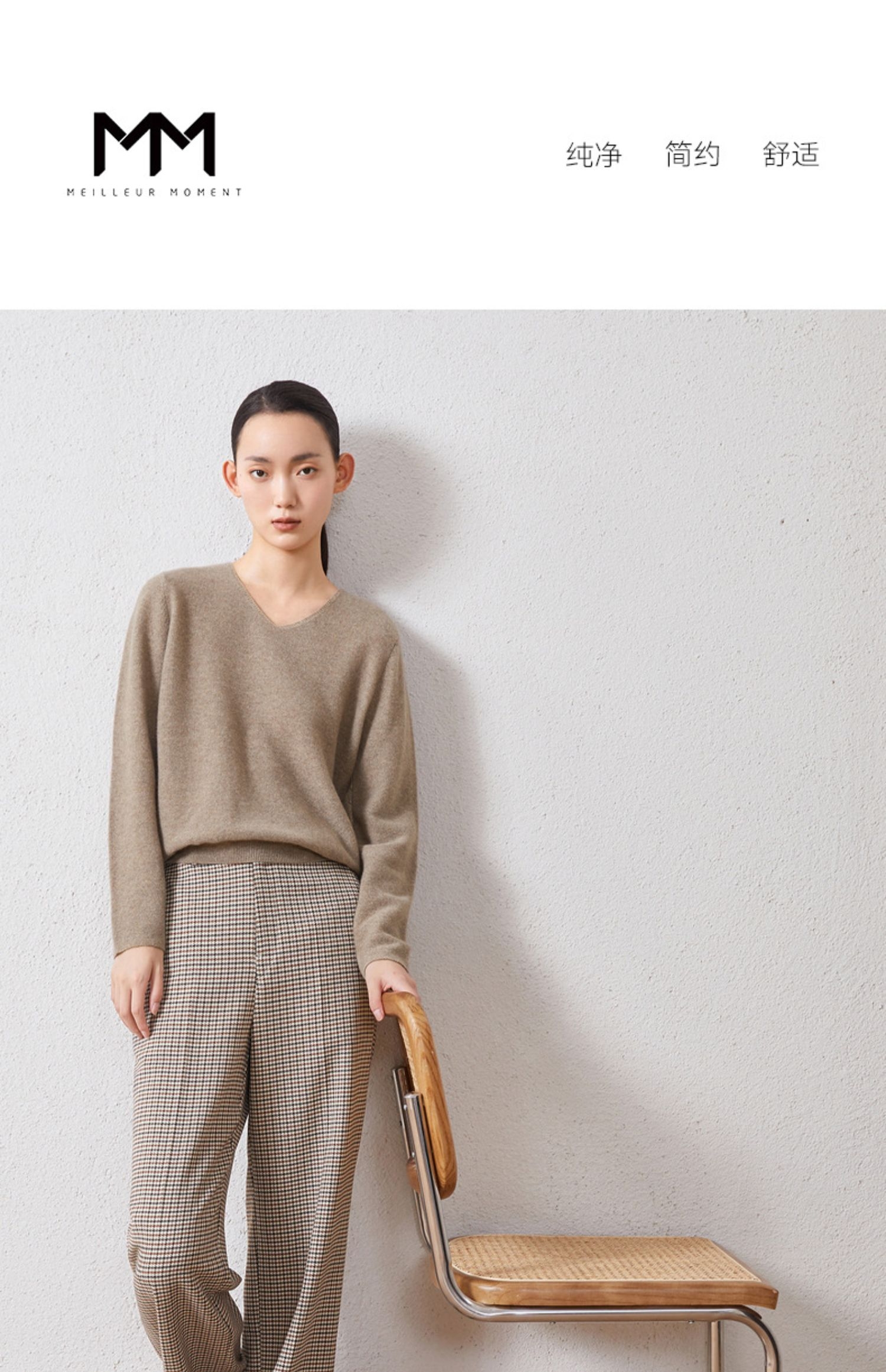 >>商场同款MM麦檬2020秋季新款V领气质羊绒女士针织衫
