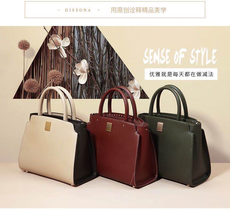 迪桑娜女包通勤OL优雅手提包 欧美时尚包包单肩包简约复古斜挎包