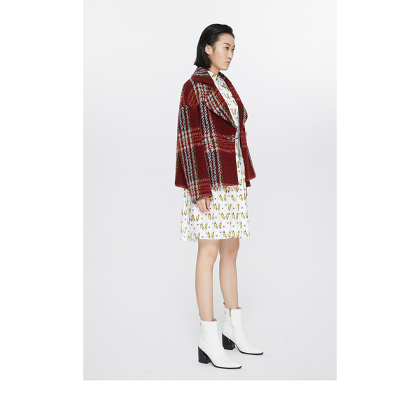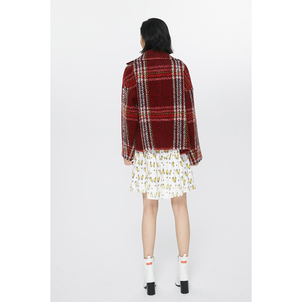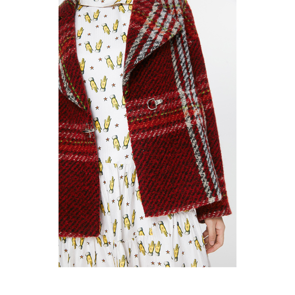 玛丝菲尔素紫酒红格纹短款外套