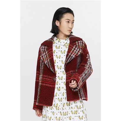 >>玛丝菲尔素紫酒红格纹短款外套