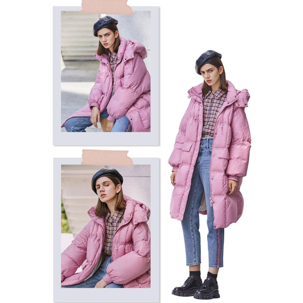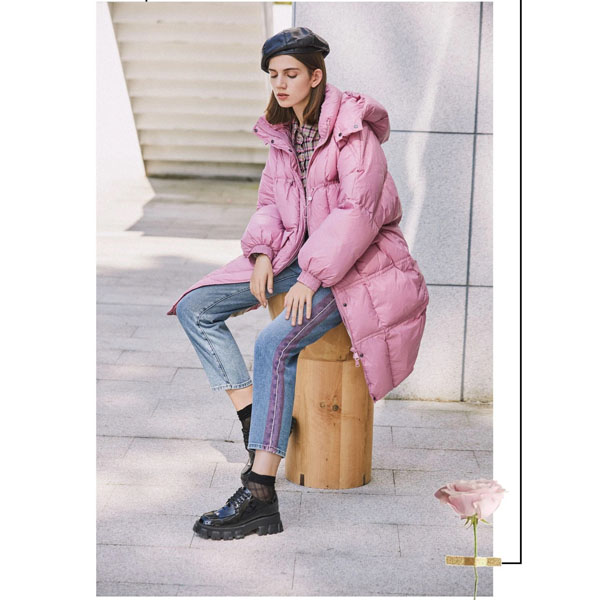 MR&ER2020冬装新款少女粉长款面包羽绒服,减龄休闲