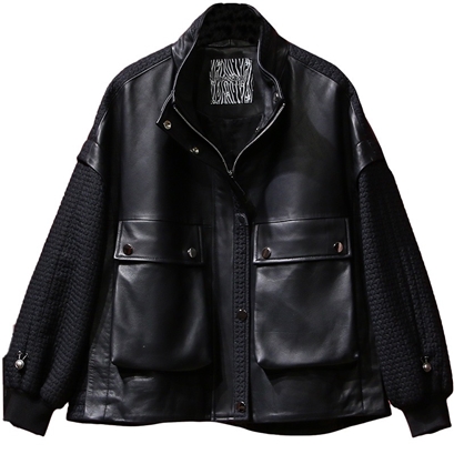 >>太平鸟2021春装新品酷美风绵羊皮革外套