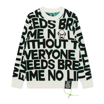 >>GXG服饰满版字母印花圆领毛衣