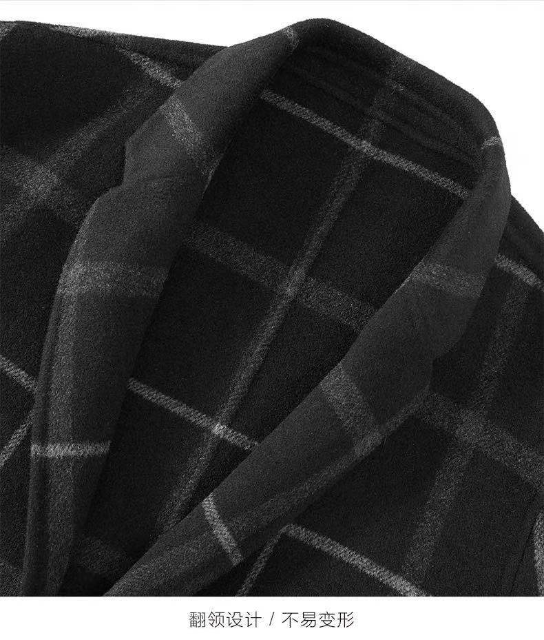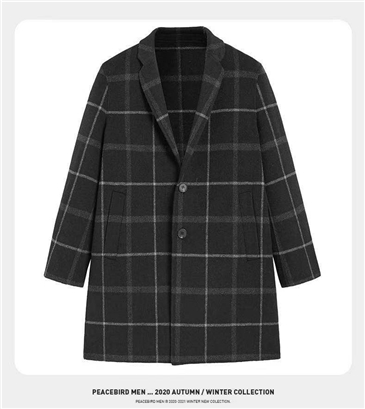 >>太平鸟男装 男士新款格纹中长款毛呢大衣