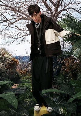 >>太平鸟男装 新款黑白撞色CORDURA羽绒服