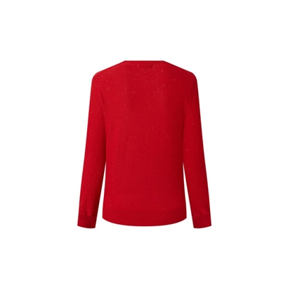 LM8K410MXF004 织入微型珠片和红色亮丝;螺纹收口;甄选高级澳毛,细腻柔韧,舒适轻软,织入微型珠 片点缀,星星点点,璀璨生辉,娇艳樱桃红,热情浓烈,提亮气色,是年末必备的春节开 年红。