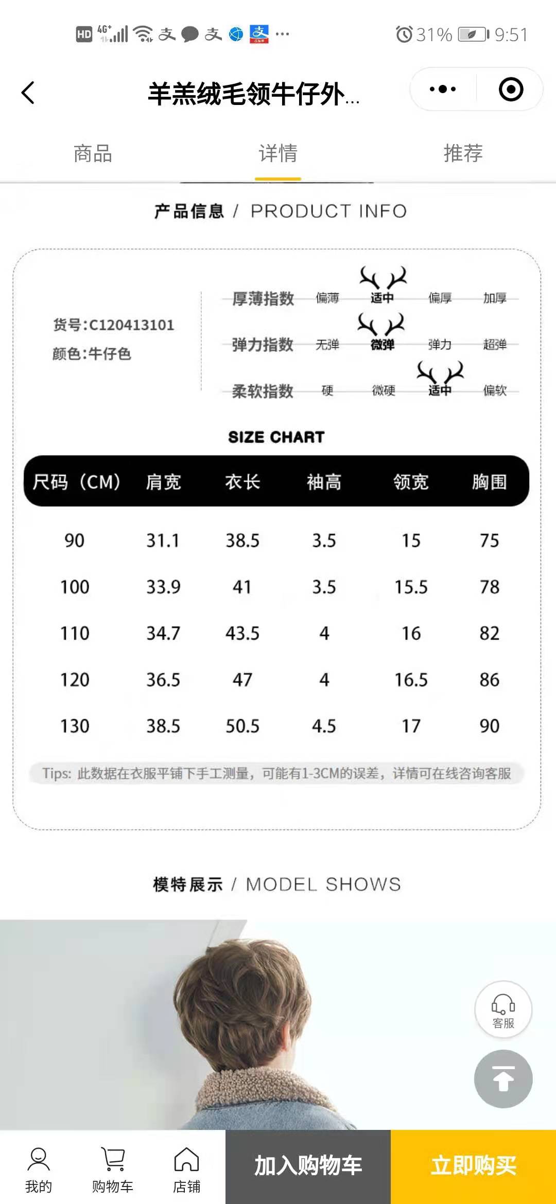 牛仔外套里面加绒加厚,面料柔软透气,时尚大气!尺码120-170