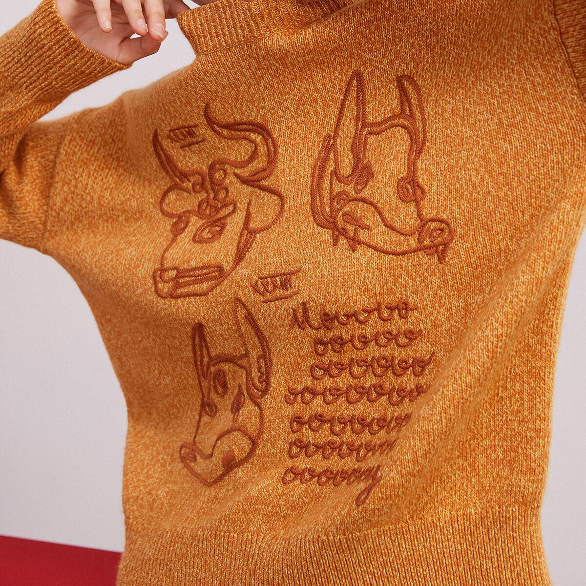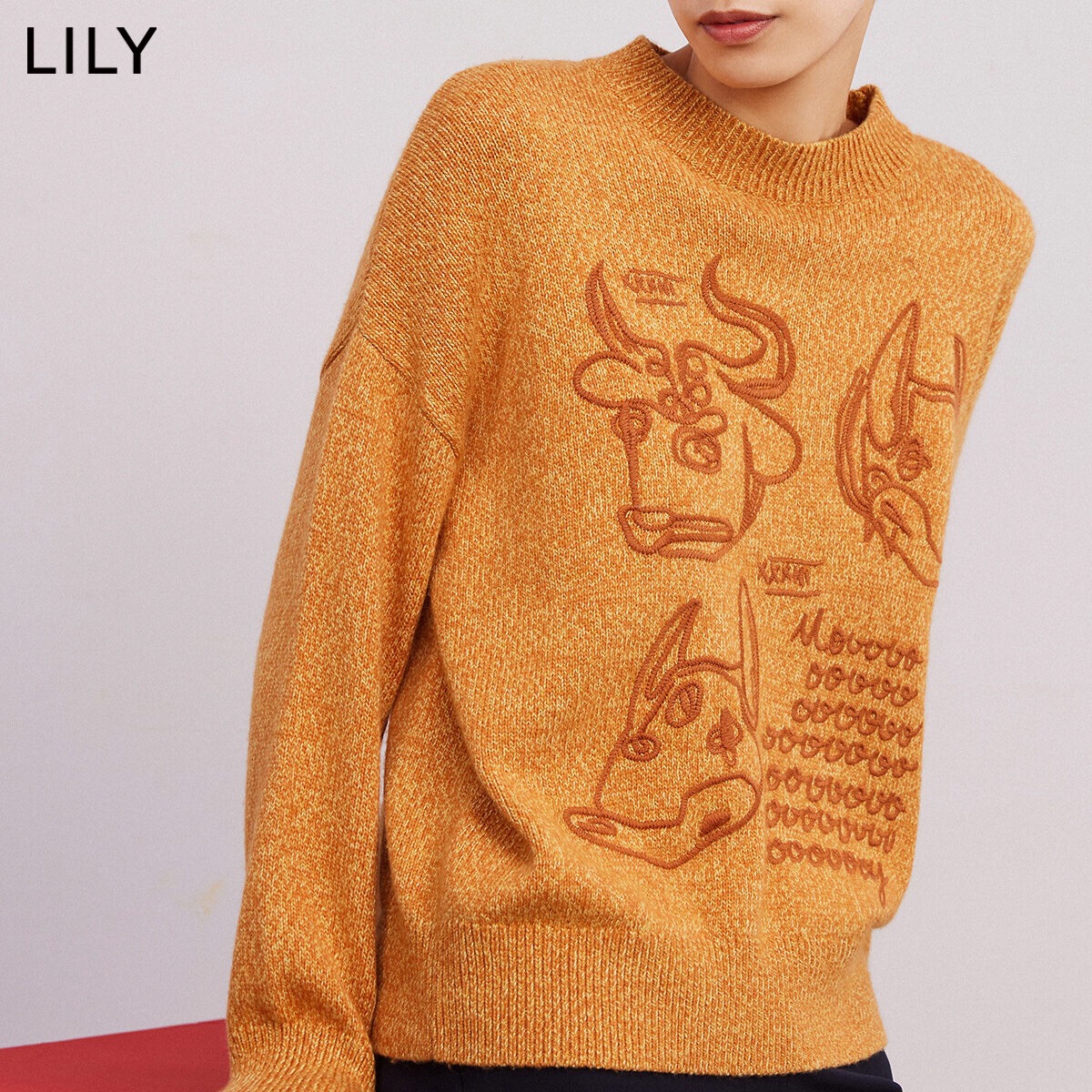 LILY2021新年牛气冲天半高圆领毛针织衫