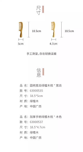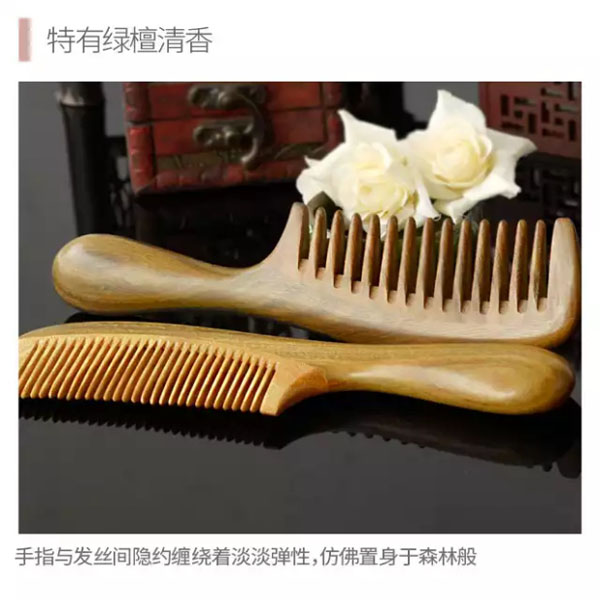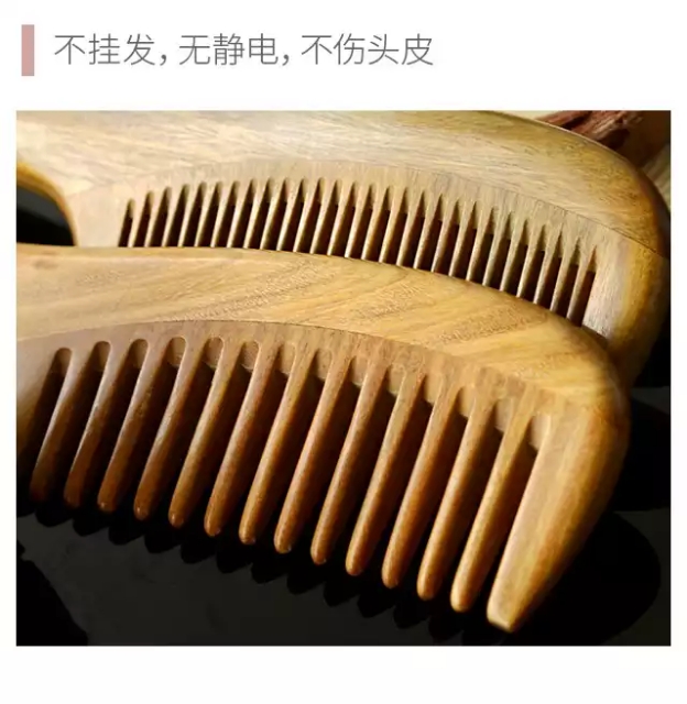 加厚按摩绿檀有柄梳