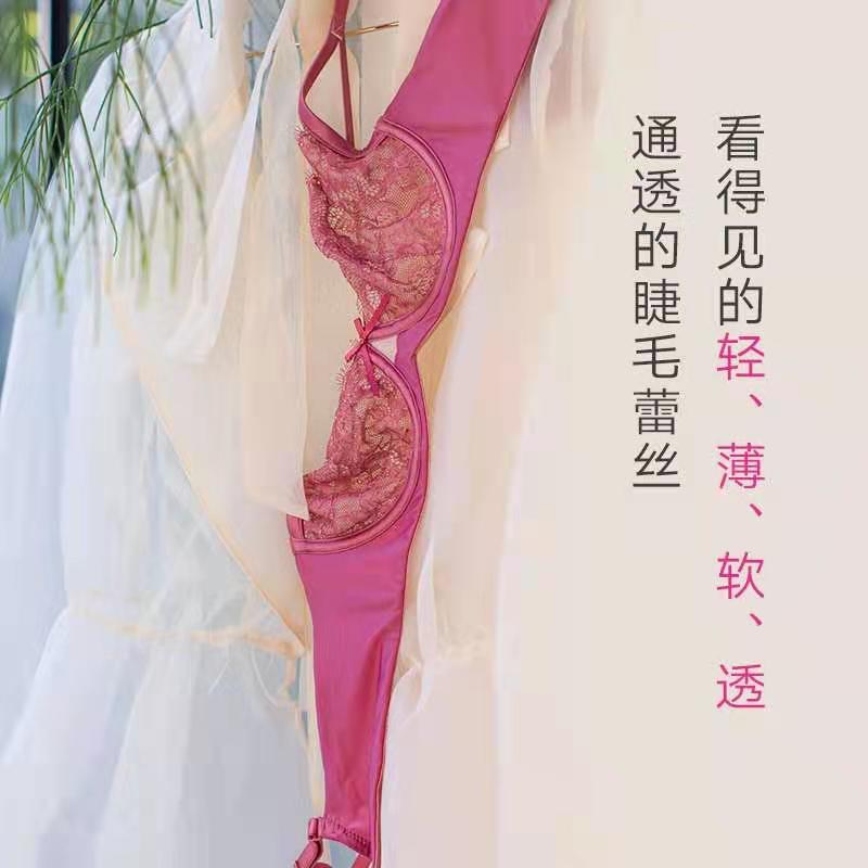 曼妮芬性感文胸轻薄透气睫毛蕾丝长三角U比单层围软钢圈20840508