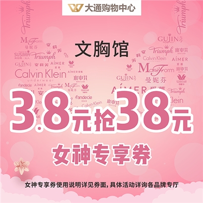 女神专享券使用规则: 文胸馆单柜单票实付满380元抵用一张,个别除外。