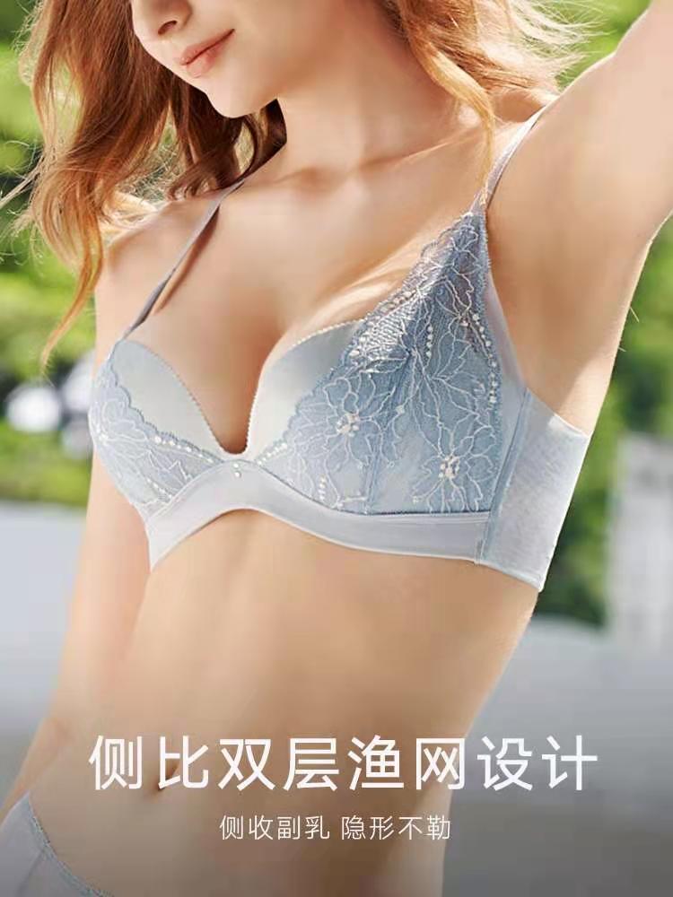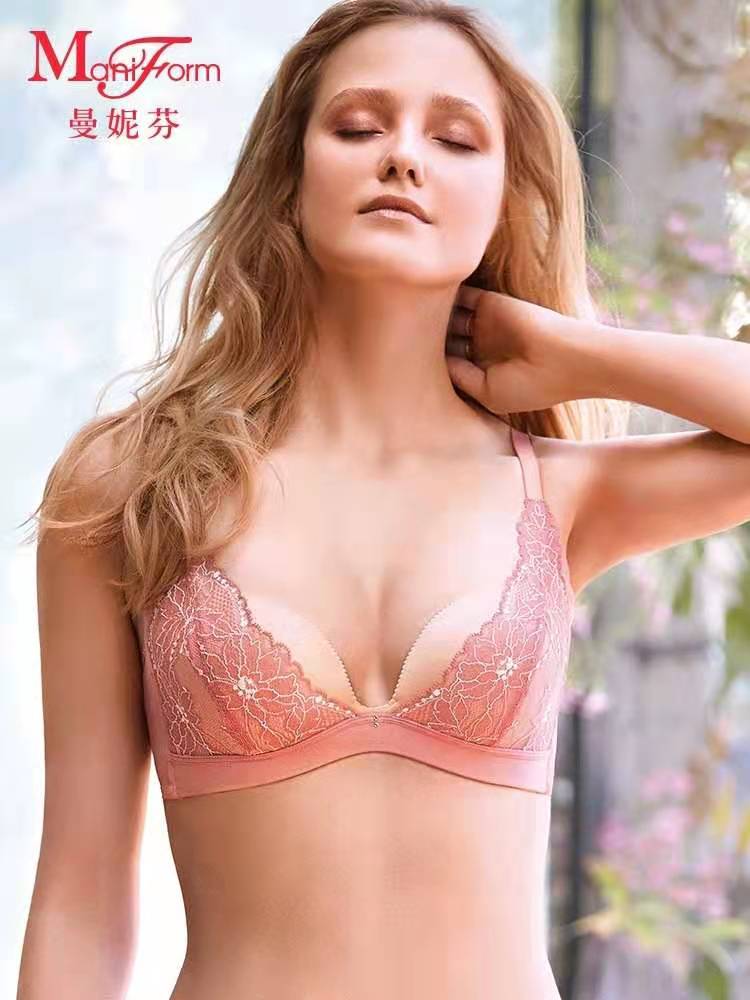 曼妮芬无钢圈文胸聚拢侧收隐形小胸平胸深v蕾丝性感20812108 买一送一,拍1发2,颜色备注