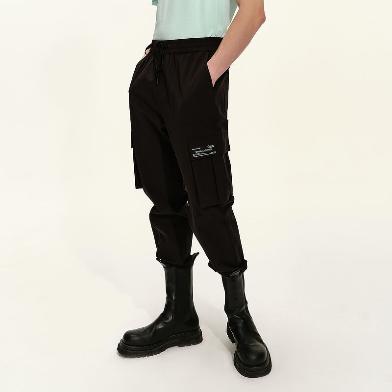 GXG男装2021年春季商城同款黑色口袋束脚裤男士工装休闲长裤潮