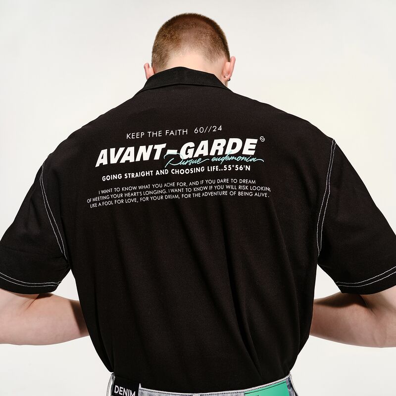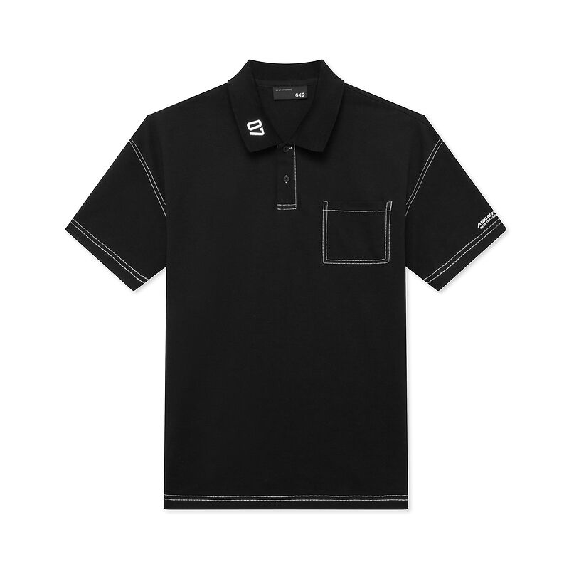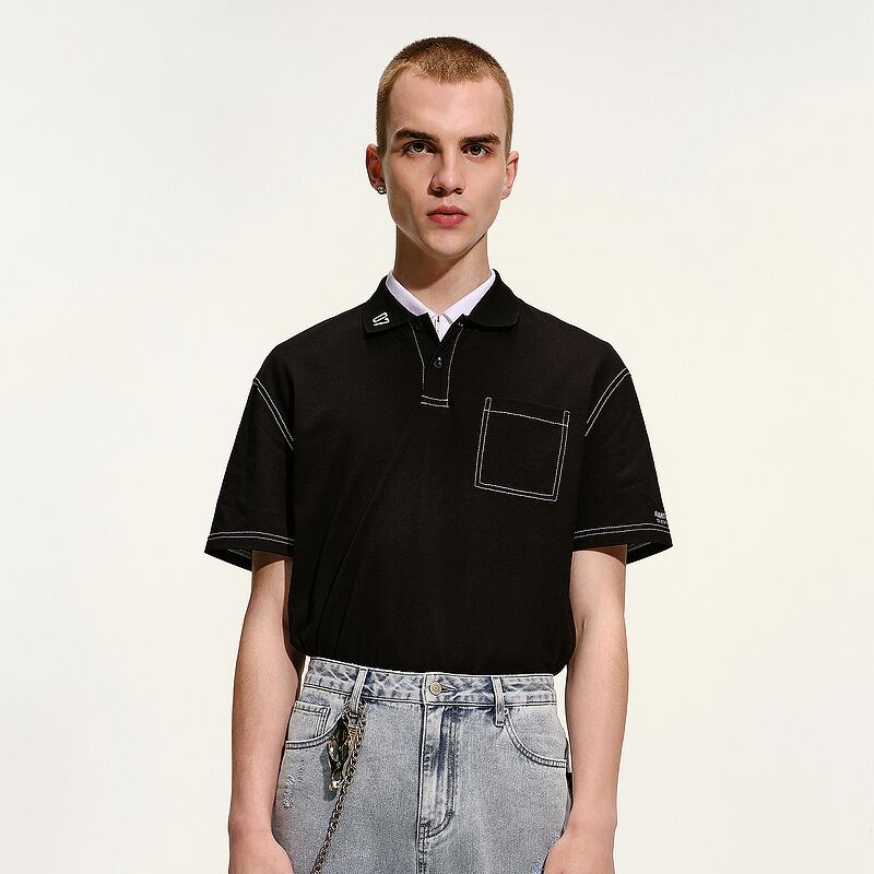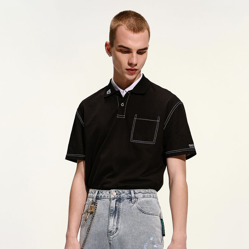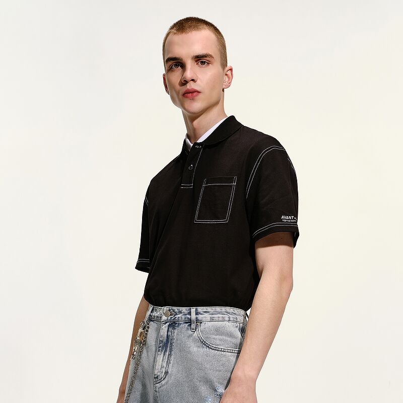 GXG男装生活系列2021年夏季商场同款黑色明线POLO衫印花短袖上衣